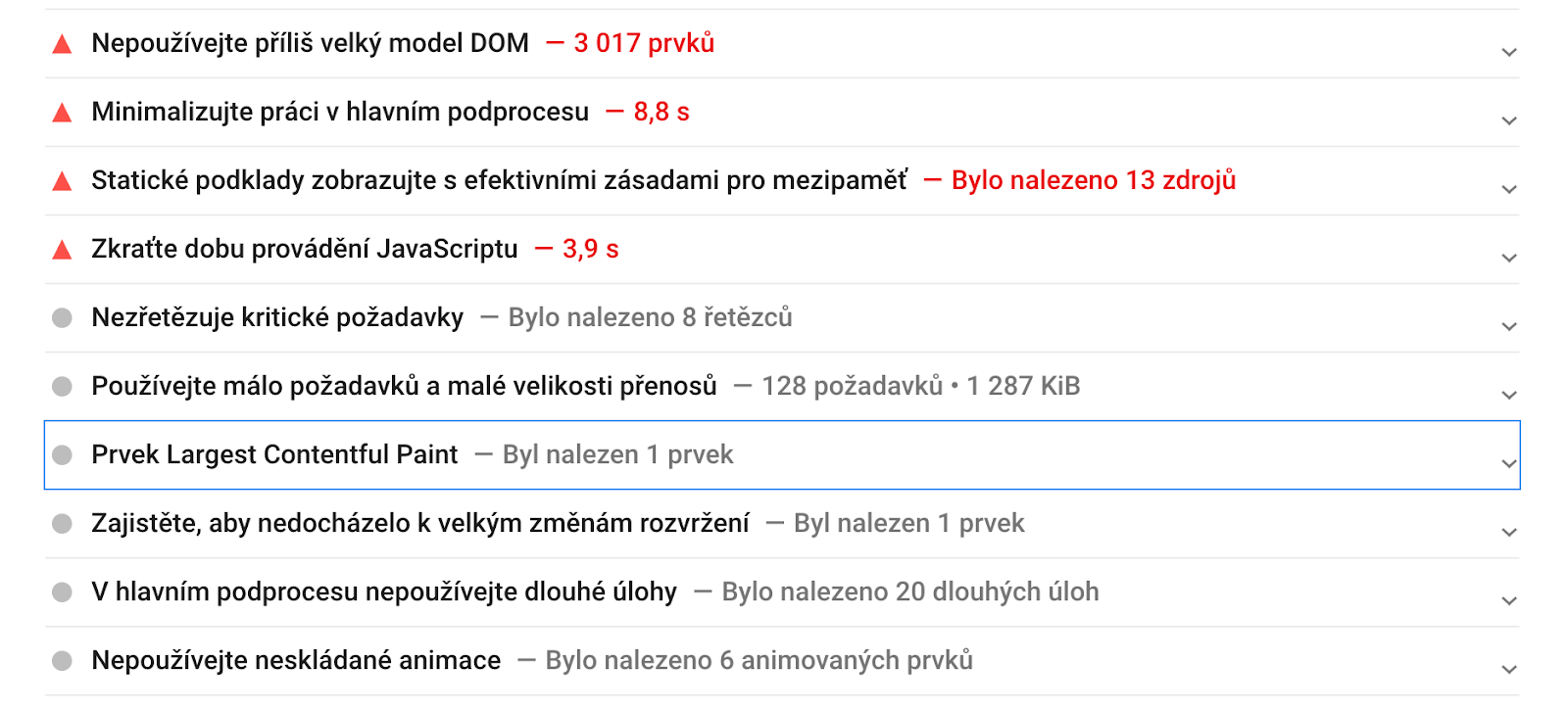 Hodně častou chybou je lazy loading nasazený jenom na velké obrázky na stránce. Ano, z logiky věci vyplývá, že odložit načtení největších obrázků nám ušetří nejvíce dat, ale v případě LCP prvku vám to podkopne nohy.