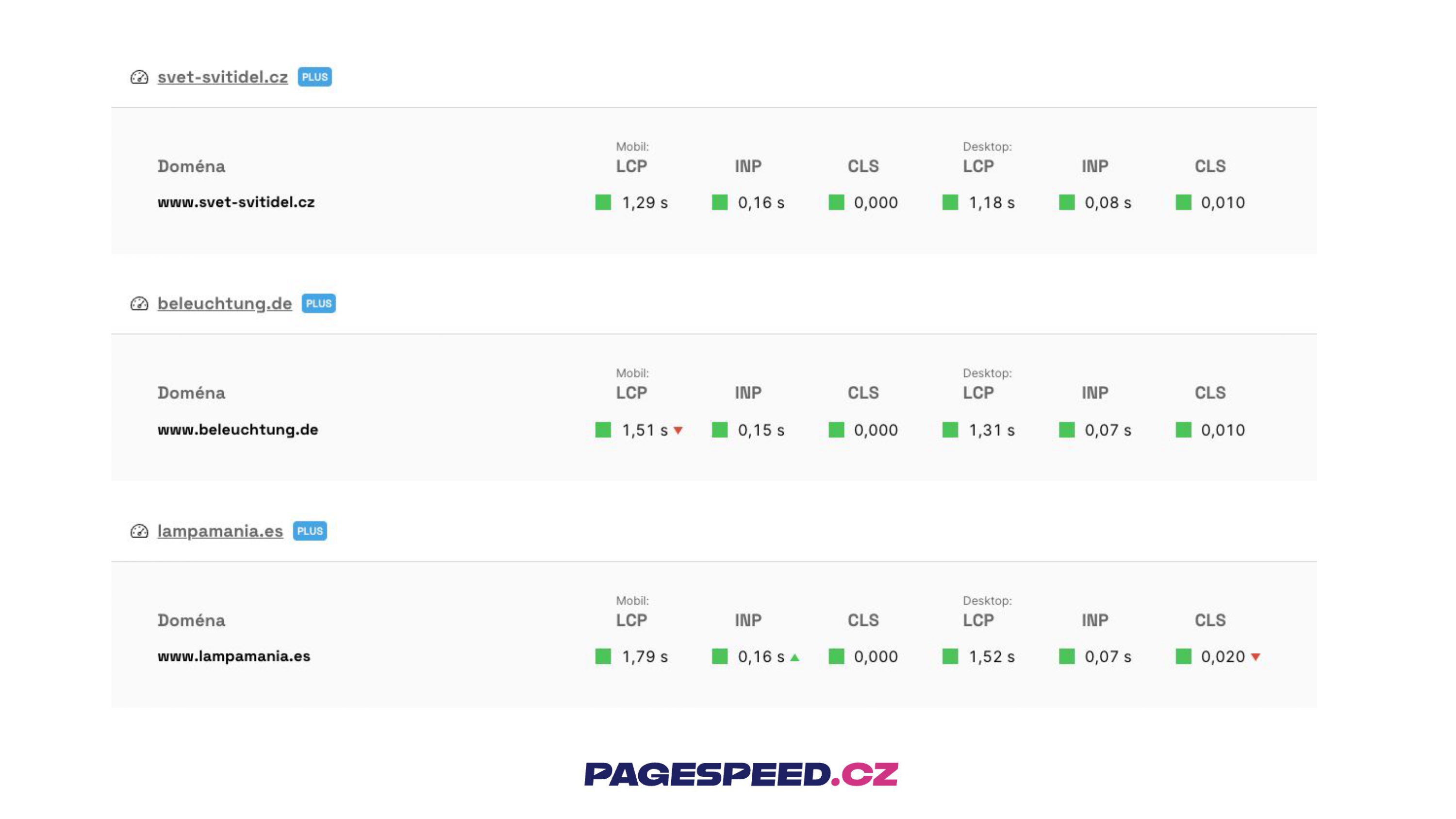 On some type pages, INP improved by double-digit percentages. SvětSvítidel.cz is now one of the first major client websites that (according to Search Console) has no URLs requiring attention regarding INP: