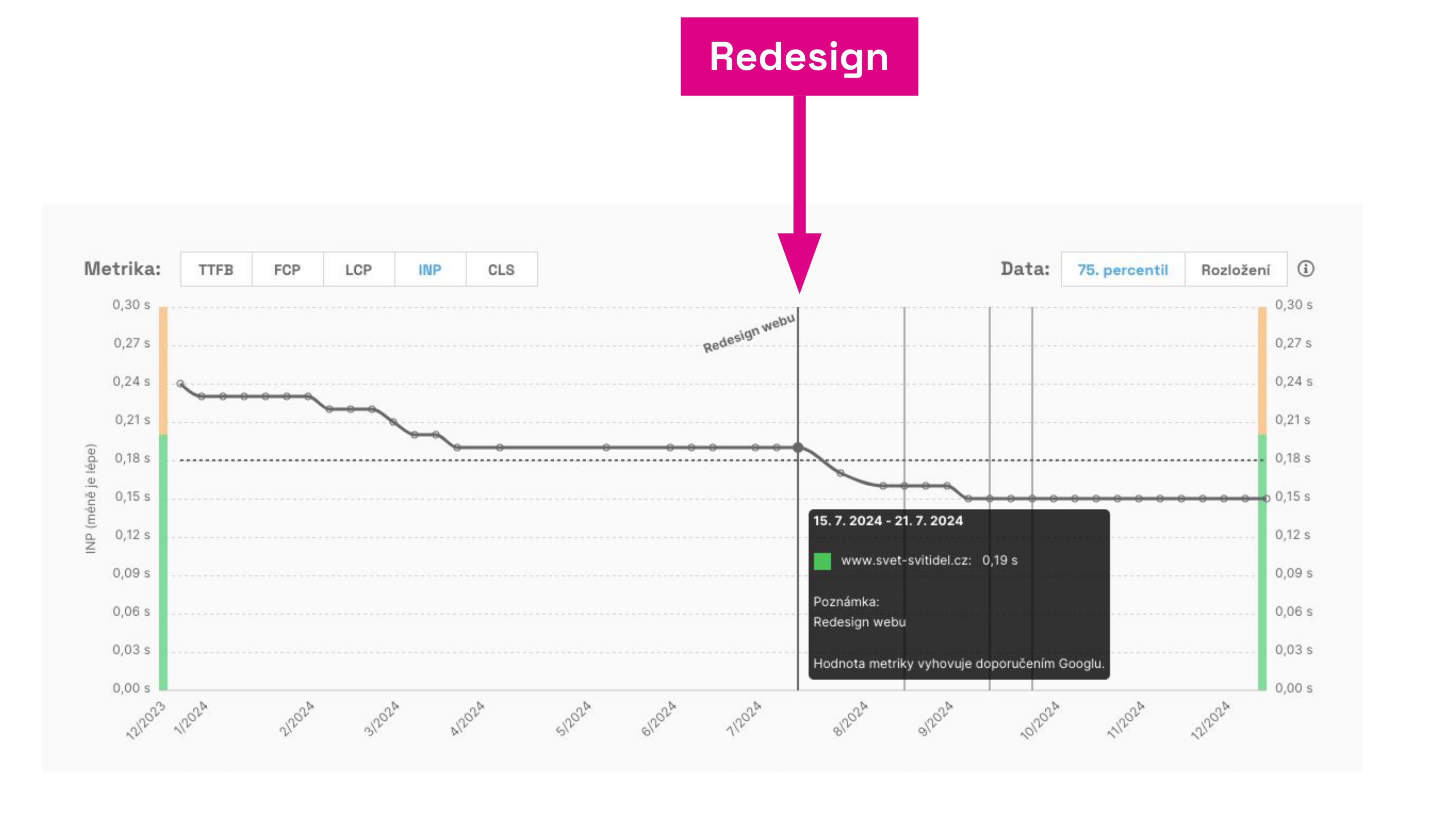 Improvement in the INP metric since the redesign of Svět svítidel.