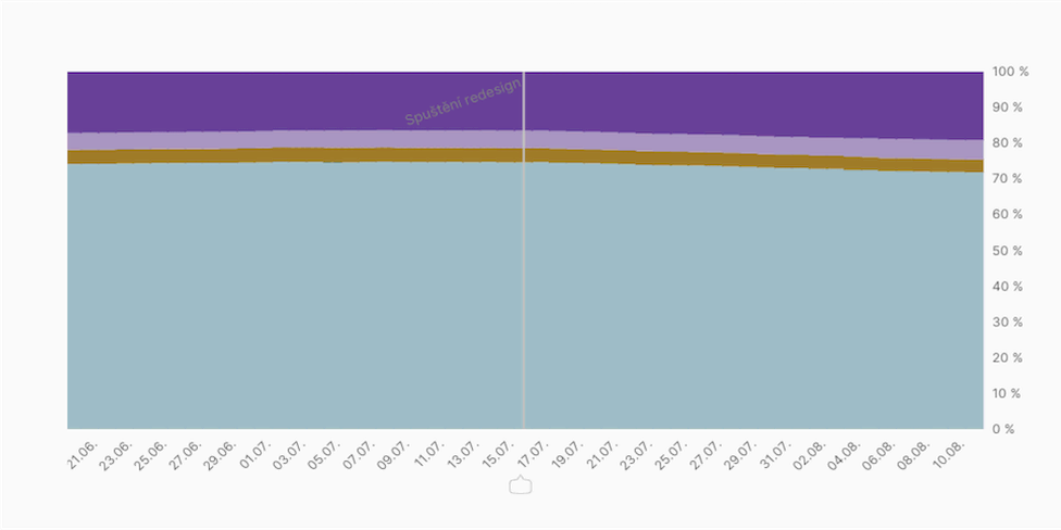 V reportu „Domény“ uvidíte vývoj rychlosti u uživatelů pro vaše weby. To je zásadní pro hodnocení úprav, které děláte. Zobrazíme vám vývoj po dnech nebo po měsících.