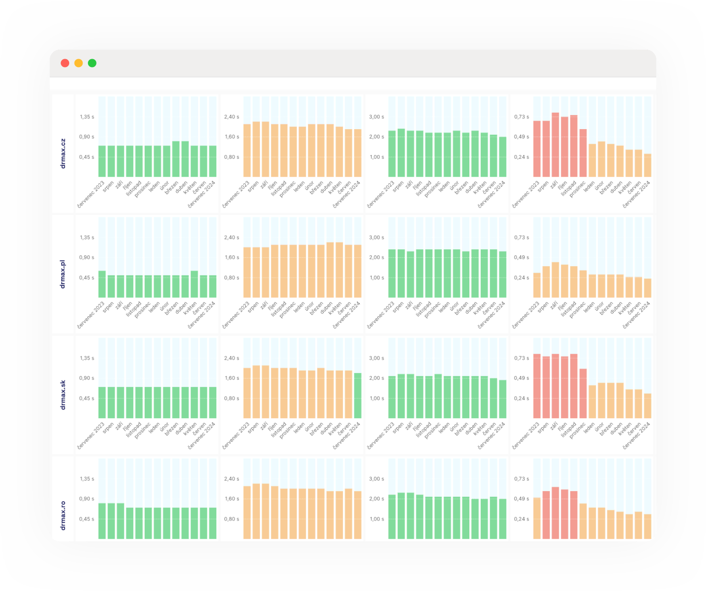 Sledujte vývoj rychlosti vašich domén a stránek. Identifikujte technické problémy a objevte příležitosti pro  zlepšení díky našim podrobným reportům.