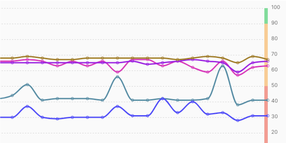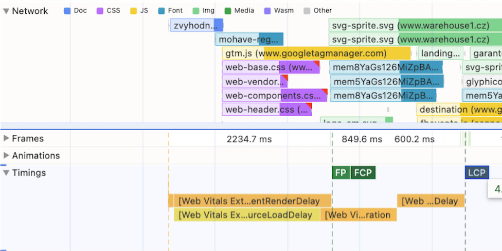Několikrát denně změříme web pomocí nástroje Lighthouse na naší infrastruktuře. Tato data jsou méně přesná, ale okamžitě dostupná.
